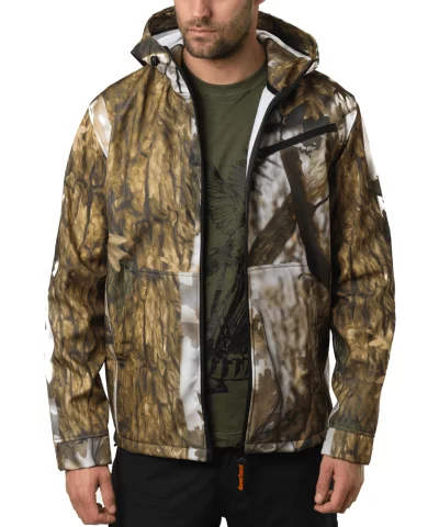 Lovačka jakna modernog dizajna izrađena od veoma kvalitetnog softshell materijala u hrast camo Caprella winter šari