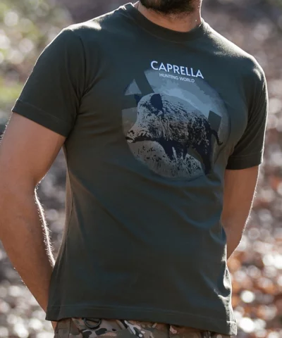 Pamučna lovačka majica sa motivom divljeg vepra na jutarnjem suncu, izrađena od premium brušenog pamuka, gustog tkanja. Odlična za svakodnevno nošenje u lovu.