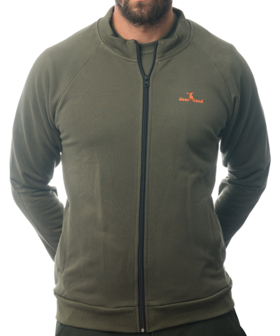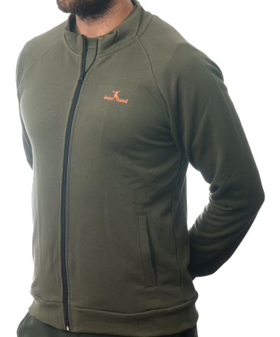 Lovački duks izrađen od premium pamuka (vrhunski nebrušeni pamuk) u maslinastoj boji sa ranglanim rukavima.