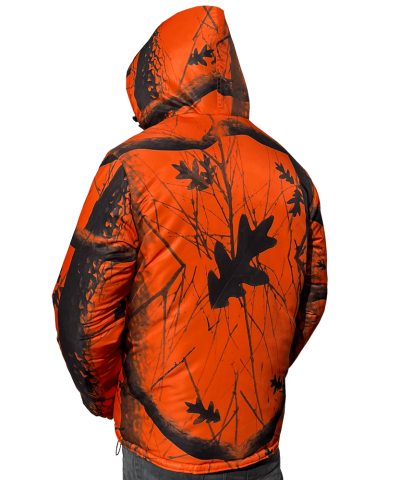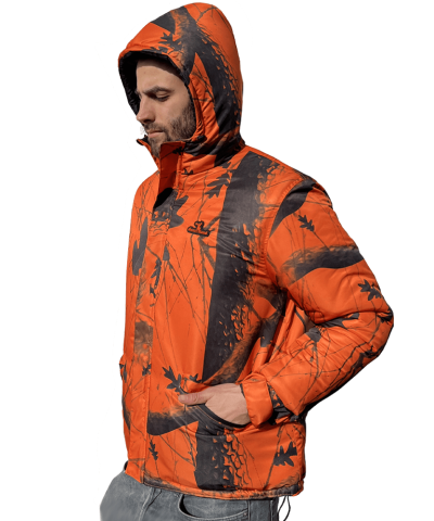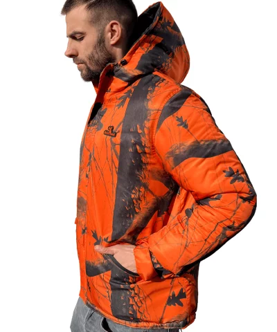 Lovačka jakna modernog dizajna izrađena u Caprella camo fluo šari.