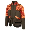 Lovačka jakna izrađena u high vis efektom (visoka vidljivost na terenu) narandžaste boje i zelene boje. Troslojni materijal, unutrašnjosti ćebaste, sa membranom i vodoodbojne spoljašnosti.