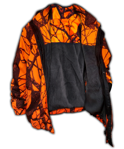 • Boja: fluo oranž camo (boja jakne) + siva sa fluo oranž camo detaljima na grudima i leđima (boja duks-jakne)