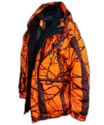 • Boja: fluo oranž camo (boja jakne) + siva sa fluo oranž camo detaljima na grudima i leđima (boja duks-jakne)
