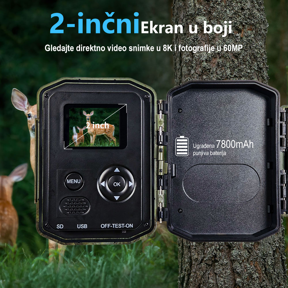 Kada su u pitanju fotografije, kamera nudi rezoluciju do 60MP, uz više opcija (60MP, 50MP, 48MP, 42MP i niže), što garantuje kristalno jasne snimke u dnevnim i noćnim uslovima. Ovo je čini idealnom kao kamera za lov u svim situacijama.