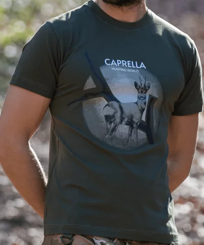 Pamučna lovačka majica sa motivom srndaća na jutarnjem suncu, izrađena od premium brušenog pamuka, gustog tkanja. Odlična za svakodnevno nošenje u lovu.