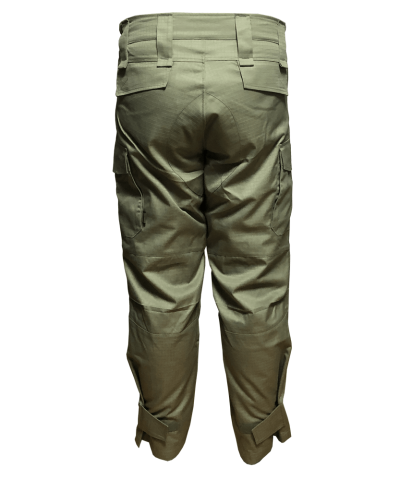 Pantalone sadrže blagi leđni greben, dok se na bokovima nalaze rastegljiva proširenja za bolje prilagođavanje linijama tela. Takođe, na struku su široke gajke za lovački opasač.