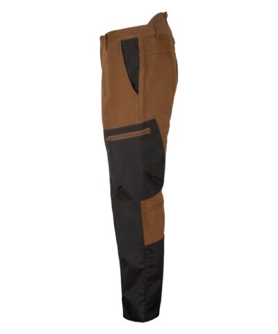 Donji deo pantalona je postavljen i vodootporan, izrađen od posebne crne poliesterske tkanine otporne na vlagu i habanje, što pruža dodatnu zaštitu pri hodanju kroz mokru travu, sneg ili blatnjave terene. Upravo zato su ove pantalone idealan izbor za hladnije dane na terenu.