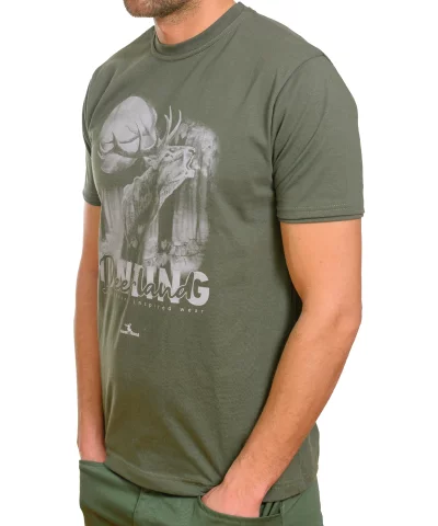 Lovačka majica kratkih rukava Deerland Cervus Pro je majica vrhunskog kvaliteta sa motivom evropskog jelena u šumskim uslovima tokom rike. Nemenjena je svim istinskim zaljubljenicima u lov ovog gorostasa naših šuma.