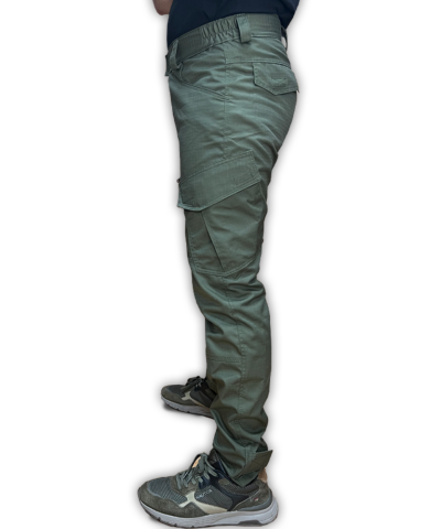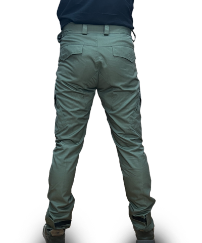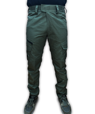 Visokokvalitetne lovačke pantalone izrađene od premium materijala za sve vremenske uslove. Pantalone napravljene od 260g/m2 rip-stop materijala u kombinaciji 50% pamuk i 50% poliester. Materijal dorađen da vodoodbojnost. Pantalone poseduju rastegljive bokove, podesivu širinu struka uz pomoć viskokokvalitetnog japanskog čička (YKK) koji garantuje trajnost i do 20 godina. Međunožni deo ovih pantalona je izrađen u duplom sloju, što sprečava, habanje, pucanje prilikom kretanja na terenu. Širina nogavica je takođe podesiva uz pomoć kvalitetnog YKK čička, dok su i svi rajsferšlusi ovog proizvođača, što garantuje gotovo neograničen broj potezanja, bez kočenja, stajanja, ispadanja klizača ili bilo kakvog nepredviđenog oštećenja.